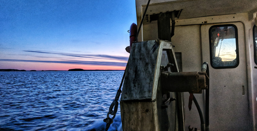 I see a light from the Joshua & Jacob steaming towards shore against a blanket of predawn light. I climb aboard the 42 ft vessel from the tall Little John Dock: up and around the wheelhouse, over the narrow side, and down onto the deck of the boat.